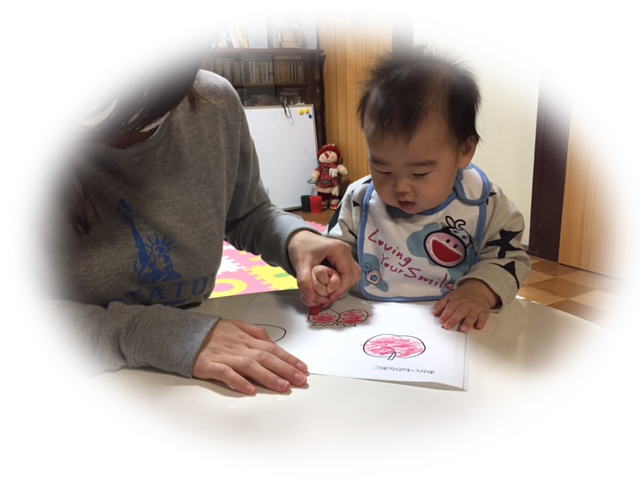 導入レッスンでは、音楽に合わせて体を動かしたり、おうた遊びをしたり、クレヨンを使って色塗りをしたり、シール張りをしたり、カードを使ったり・・・と、子供たちにとっては